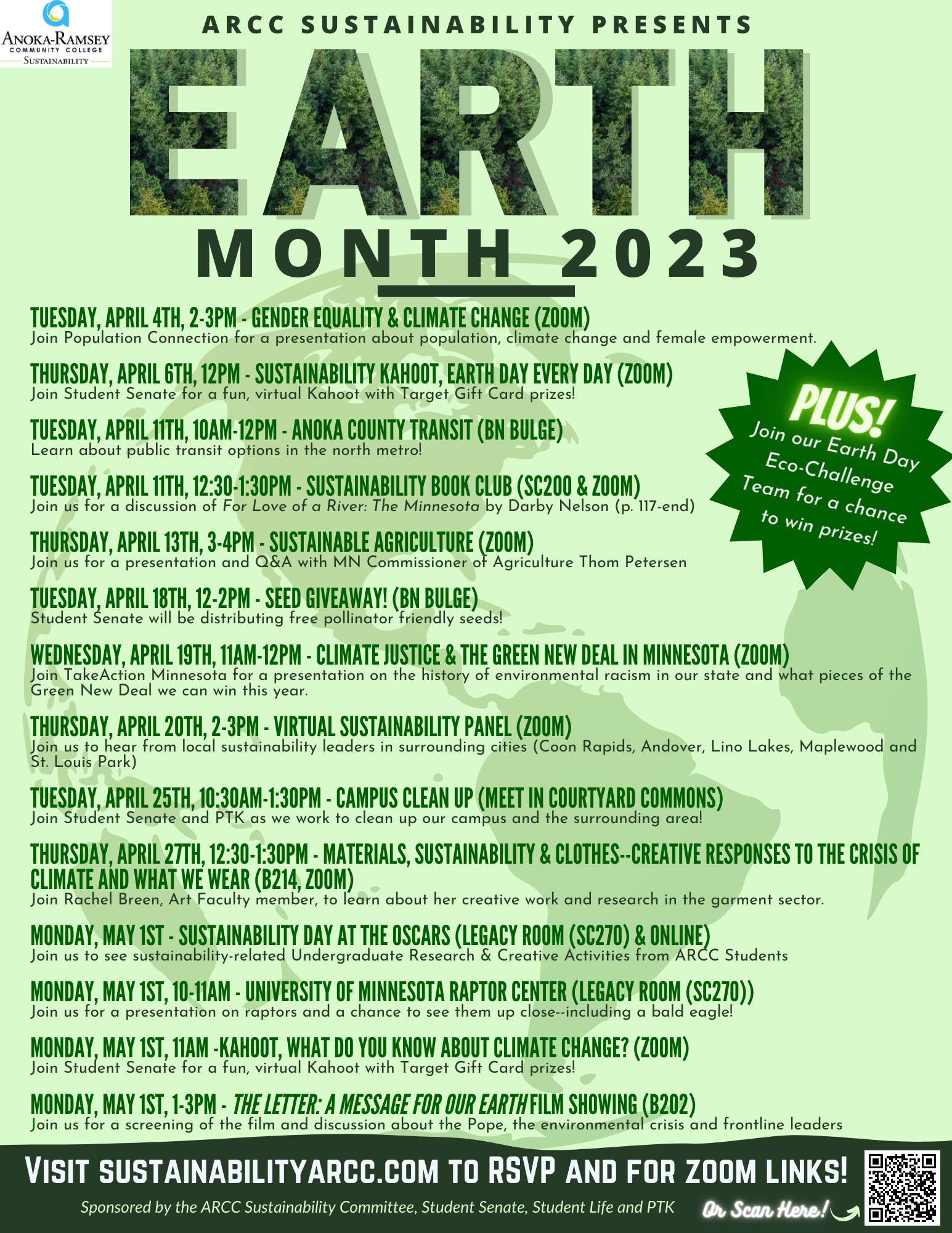 This year we encouraged students, staff and faculty to celebrate their love for Mother Earth with ARCC Sustainability, and get to know other green-minded individuals! All events were free and open to all.
